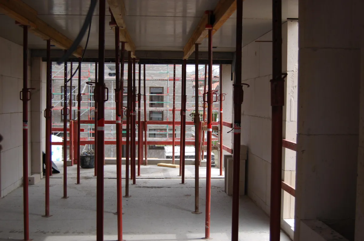 De bouw maakt stevige vooruitgang. De ruwbouw vordert snel en het gebouw krijgt stilaan zijn definitieve vorm.