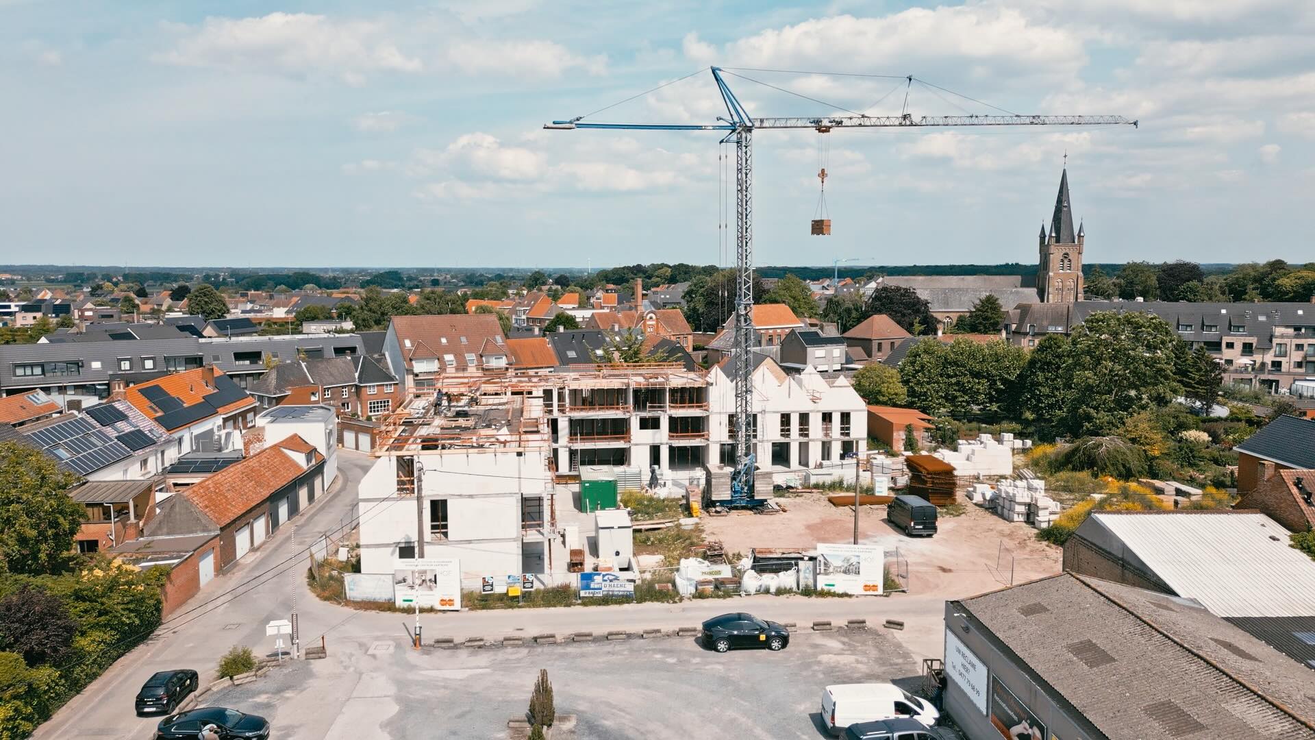 De bouw maakt stevige vooruitgang. De ruwbouw vordert snel en het gebouw krijgt stilaan zijn definitieve vorm.